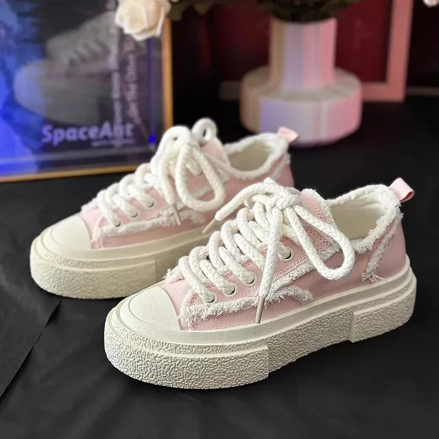 Tanzanite Fringed Lace-Up Platform Sneakers